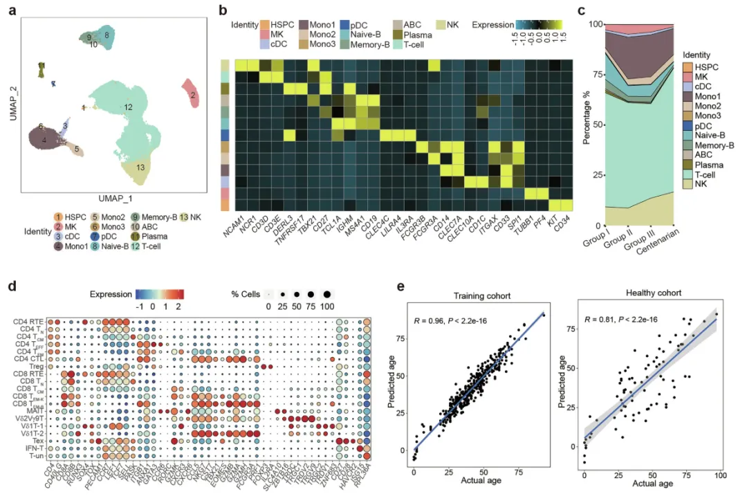 2025年10月24日,四川大学胡洪波、张惠媛、胡佳及陆军军医大学吴玉章共同通讯在Nature Aging(IF=19.4)在线发表题为“Single-cell analysis of human thymus and peripheral blood unveils the dynamics of T cell development and aging”的研究论文,该研究通过对从婴幼儿到百岁老人的胸腺和外周血样本进行大规模单细胞多组学测序,构建了详尽的人类免疫衰老图谱。在胸腺中,研究人员发现衰老降低了早期胸腺祖细胞的T谱系潜力,但增加了先天淋巴细胞谱系潜力。老化的胸腺富含成熟的T细胞,具有低 SOX4表达和炎症特征,但胸腺上皮细胞和组织限制性抗原表达耗尽。在外围,确定了T细胞衰老的转录特征,并建立了基于幼稚T细胞的免疫年龄预测模型。此外,将CD38确定为近期胸腺移民的标志物。最后,单细胞T细胞受体(TCR)库测序确定了记忆/效应T细胞内TCR库多样性的变化,并在衰老过程中扩增了病毒特异性T细胞。总的来说,该研究提供了对人类胸腺退化和外周T细胞衰老的见解,并可以为恢复受损T细胞免疫的策略提供信息。
