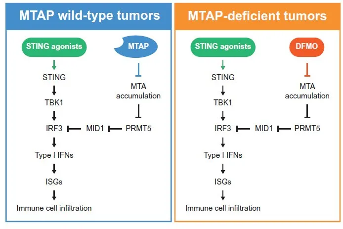 中国医药大学(中国台湾)癌症生物学与精准治疗中心的 Mien-Chie Hung(洪明奇)领衔展开了系统研究。他们的成果以题为 MTAP deficiency confers resistance to cytosolic nucleic acid sensing and STING agonists 发表于Science(2025年10月9日)。研究团队综合运用了生物信息学分析、同源细胞模型、代谢检测、表观修饰验证、蛋白稳态调控及动物实验等多层次手段,逐步揭示了MTAP缺失引发的代谢-表观-免疫交叉机制,为临床免疫治疗领域提供了重要的分子机制解释与潜在干预策略。